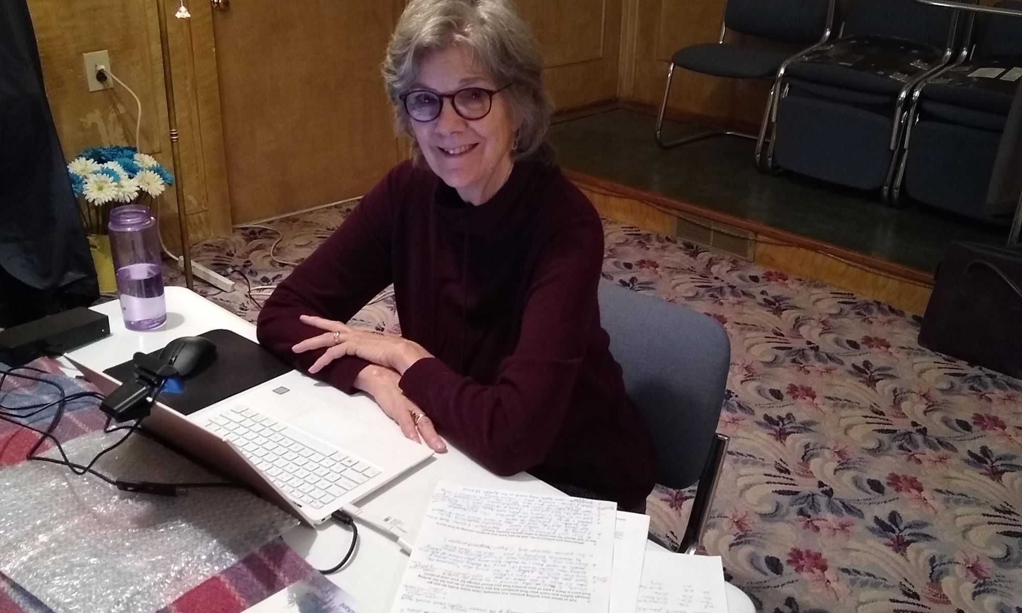 But it’s 2020, and without broadband internet access at home, I’m seated in our unheated Community Center in the Sierra with my own version of a kotatsu. Instead of hot coals by my feet, I have a small electric heater under the table. The wool blanket draped around the table and a wool sweater on my shoulders keep me warm so my teeth don’t chatter as I discuss writing with the other authors.