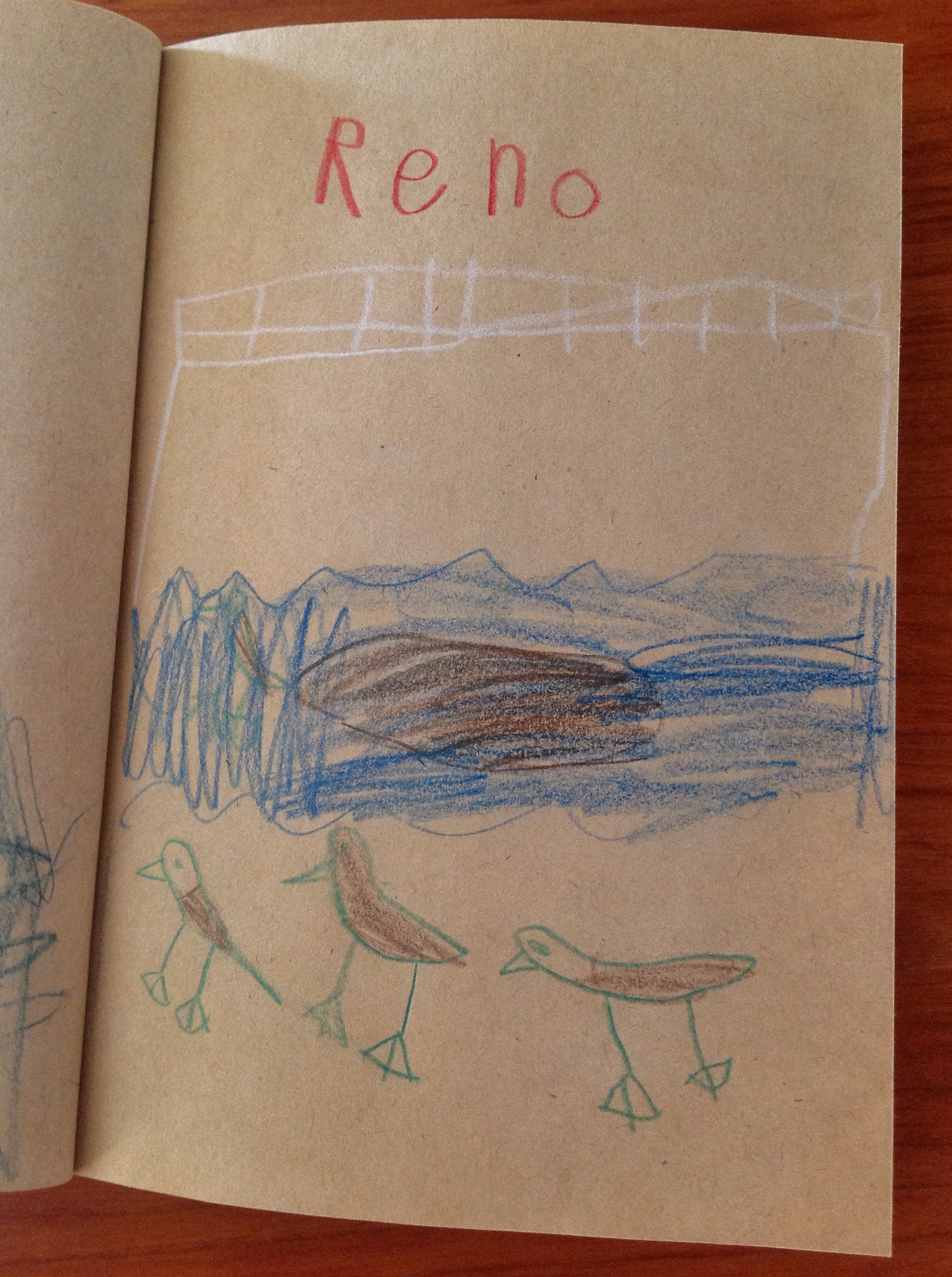 The phonetically spelled “Traval Churnals” (!) were filled with 5, 7, and 9 year old drawings of Autumn color on the Truckee River, Papa’s profiled head, distant Sierra Nevada Mountains, close-up river rocks, ducks and later, a pink sunrise through the hotel window.